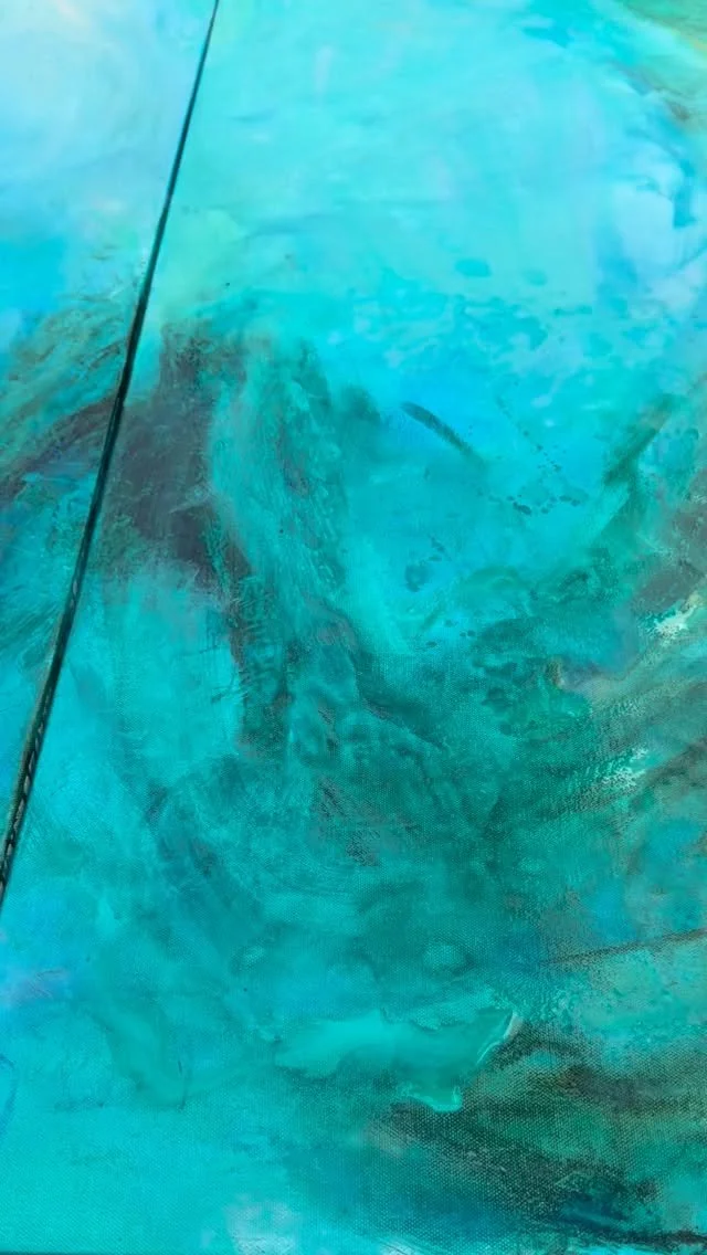 Water has become a central metaphor in my work. Having lived oceanside for years and grown up on lakes and rivers, I return to it not as a literal subject, but as an emotional and psychological space. The paintings often exist in a suspended state—suggesting both submersion and emergence—where it is unclear whether the viewer is looking down into depth or up toward light. This ambiguity mirrors the tension between trauma and healing, descent and ascension.