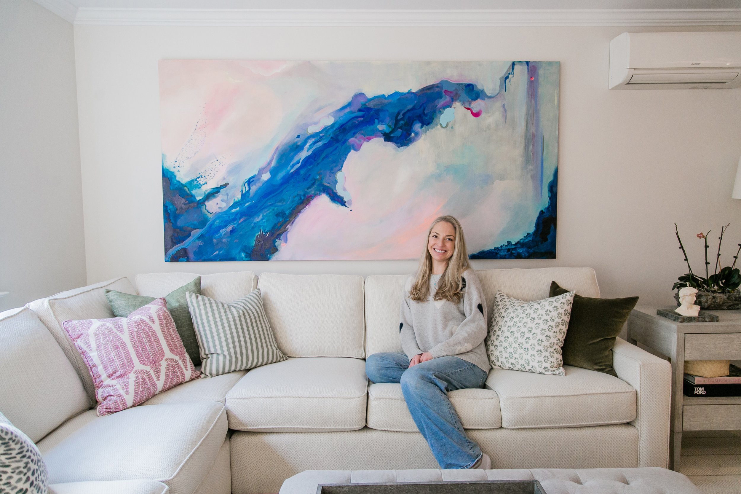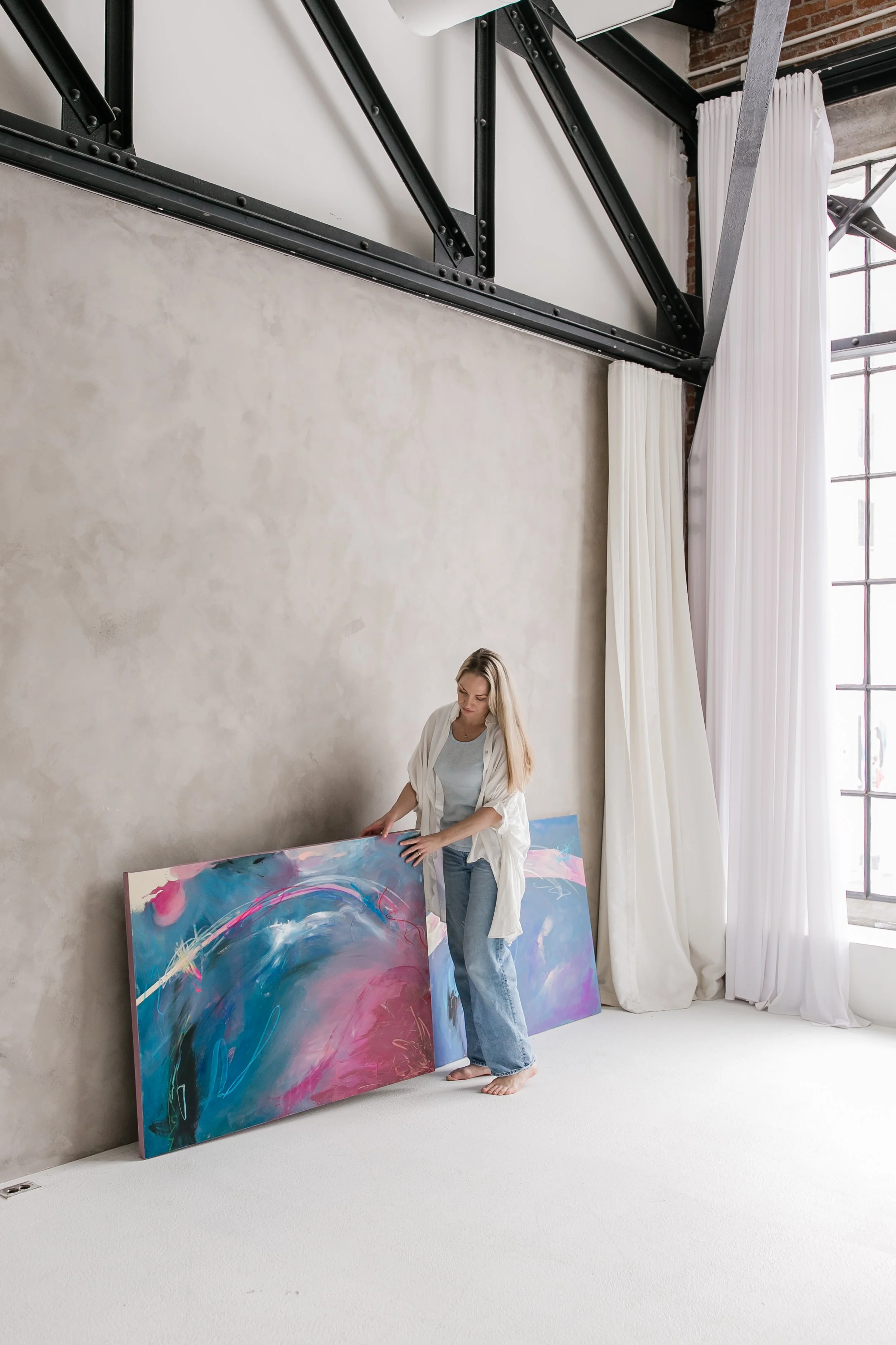 Jazmine Tara Miller is a California-born, Toronto-based abstract painter whose work explores emotional memory, perception, and the transformative qualities of light and water. Raised in Northern California near the ocean, mountains, and desert, Miller developed an early and enduring connection to the sea and nature—an influence that continues to shape her visual language and conceptual approach.